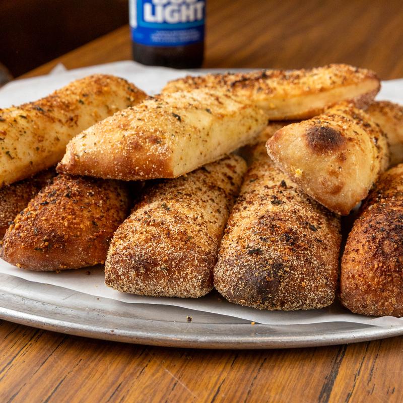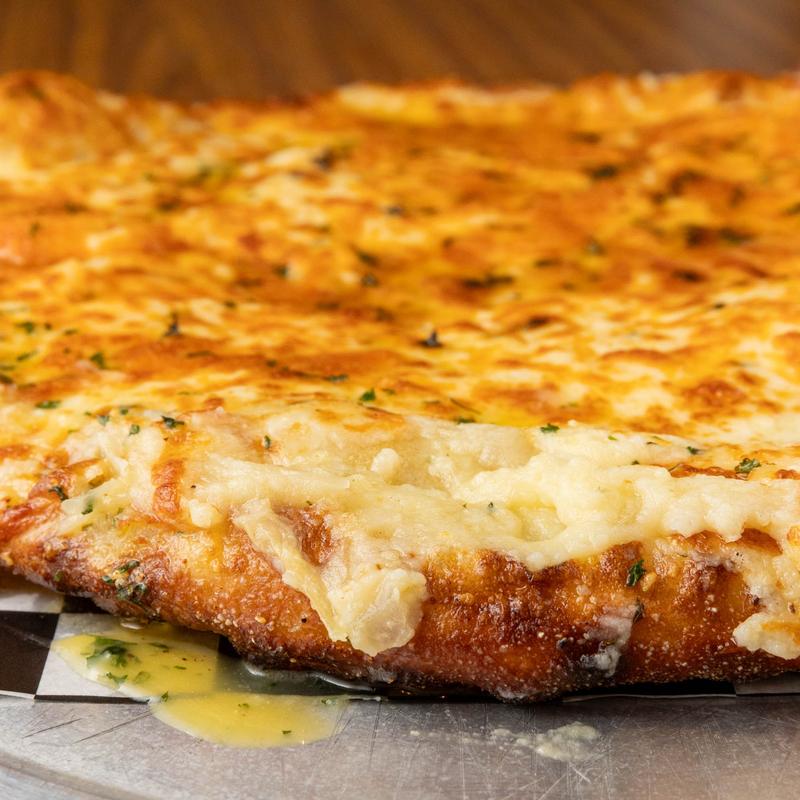 Our fresh homemade dough is sprinkled with garlic butter, provolone, romano & cheddar.